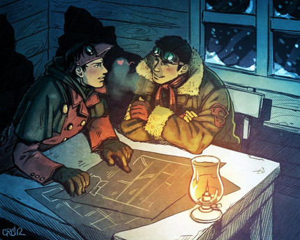 I really like how it's so simple and the background it blocked out because it doesn't matter to them. And Bolin used his bending to make them a home and Mako is using his bending to keep them warm and that is how they survive together.