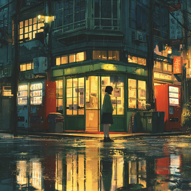 #ai #puddles #reflection #artificialintelligence #city #cozy #glow #lonely #lonelygirl #nighttime #raining #shop #artificial_intelligence #dailychallenge #artificialintelligenceart #artificial_intelligence_art