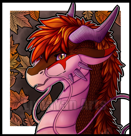 #antlers #autumn #bust #character #cute #digitalart #dragon #furry #furrydragon #headshot #portrait #scarf #ufogs #autumnleaves #characterart #mapleleaf #originalspecies