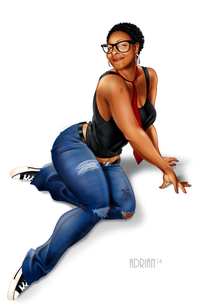 Another friend vector/pinup thingy. I'm working on getting these out faster so I can A) keep up with demand and B) get to a point where I can offer these commercially (small scale at least).Adobe Illustrator CS3, roughly 3 days not counting endless interruptions and intrusions...