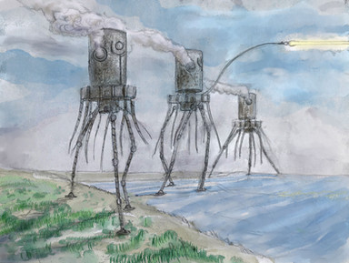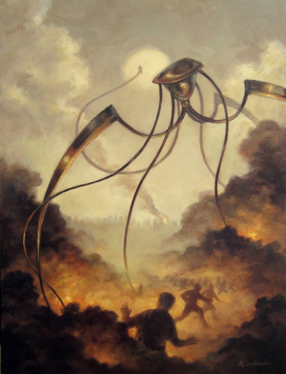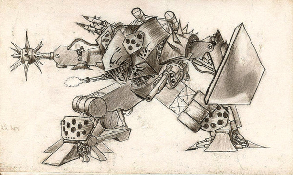 This would be an amazing character in a post-apocalyptic steampunk videogame. Especially as a threat that can only be avoided, but not killed.
