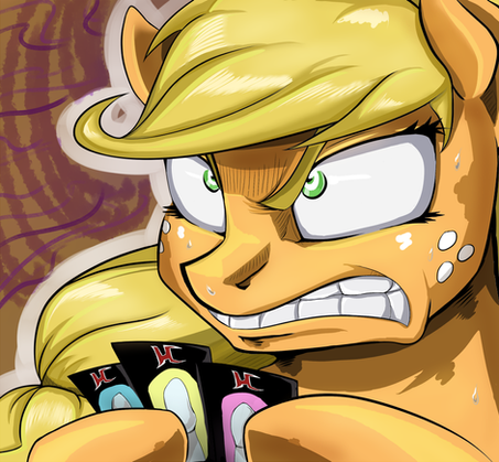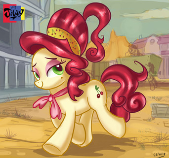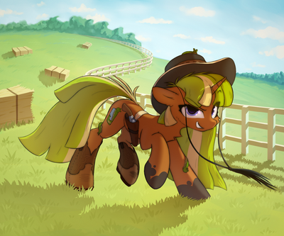 This is a re-draw of my first pony picture, which itself was based off a fanfic I had read at the time (Rarity's Rodeo I think?).Related content