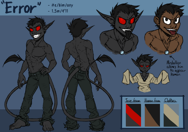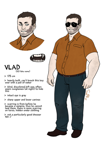 I chose this character because I could cannibalize parts of older art for it and also because this character is actually the kid of the character I did the previous reference sheet to. Vampire families are weird when everyone looks the same age
