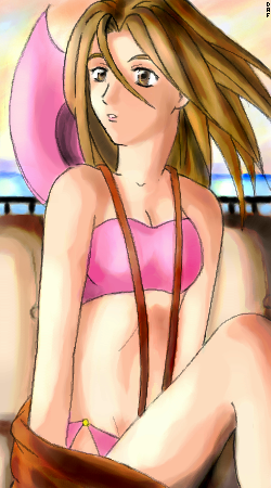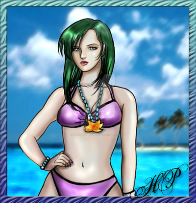 okay....maybe taht size wasn't EXACTLY the right choice...I hate being a guy for that reason. well i'm gald you like SOMETHING about this pic. I didn't even mean to do that to the bathing suit it just...happened. I really wanted a background for tifa jsut to show SOME superiority to aeris...seh deserves it. GO TIFA!!