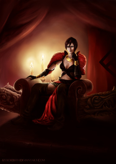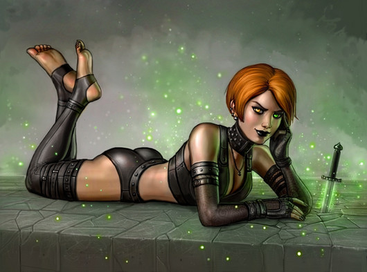 She kinda reminds me of Morrigan from Dragon age. But other than that, well done!