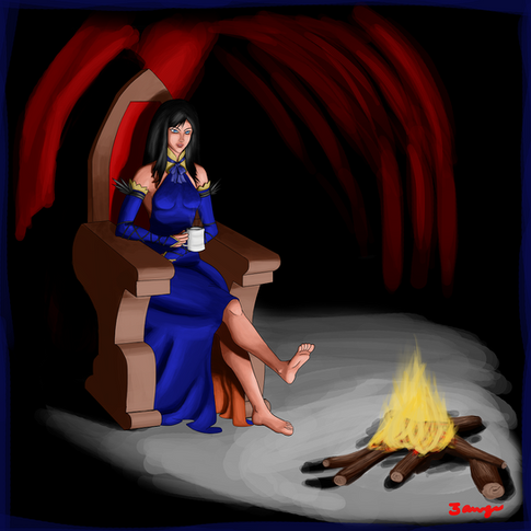 My Dark Souls 2 sorceress enjoying some rest & relaxation.Tools: Mouse, Paint Shop Pro 7