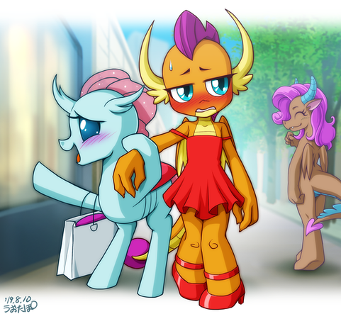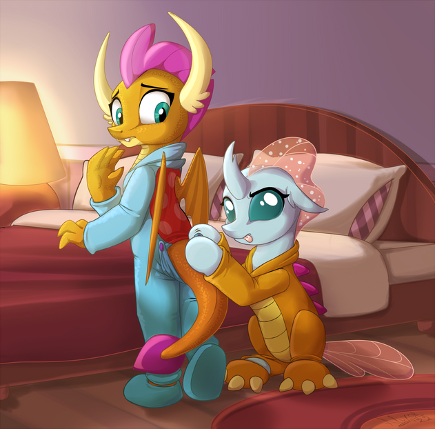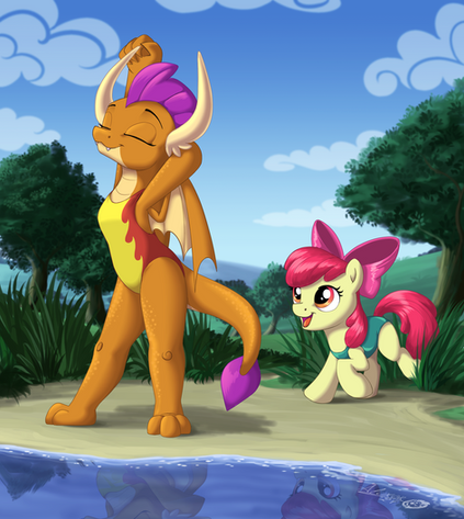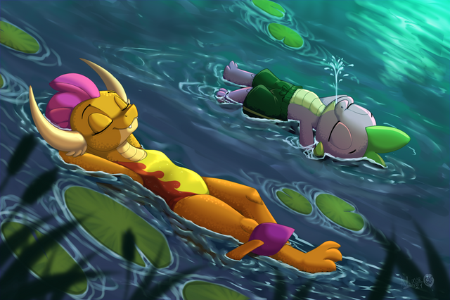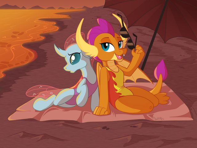 #awkward #mlp #ocellus #smolder #swimdress #smolderdragon #smolder_the_dragon