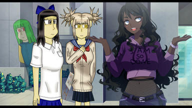 It was a normal day for Ann, with her classmates bulling her. Throwing stuff at her avoiding any interaction with her in fear of her using her quirk, but Ann never used her quirk unless she felt like it. However upon running into in the hallways, after visiting her love, Roopa lectures Ann as her motherly instincts kicked in cleaning up Ann's face. Roopa knows Ann could easily avoid all the things they throw at her, but Ann accepts their fear as she has came to accept they wouldn't accept her. As she doesn't have any friends in her class. (However after the comic she comes to get many friends out of 1-A, 1-B, and grow a stronger friendship with other BnHa Ocs that are in the comic! :3 )