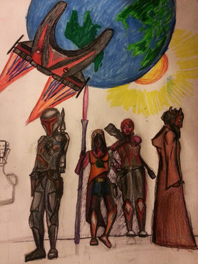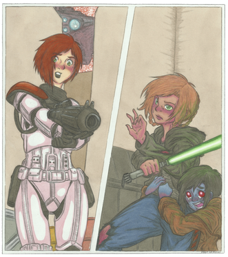 With the death of Isabelle Devon command of Goldsaber falls to the young Corellian Jedi Quinn Shara, and to affirm her resolve as well as vent her grief she carves into her helmet a message of remembrance to her fallen Alderaanian friends...
