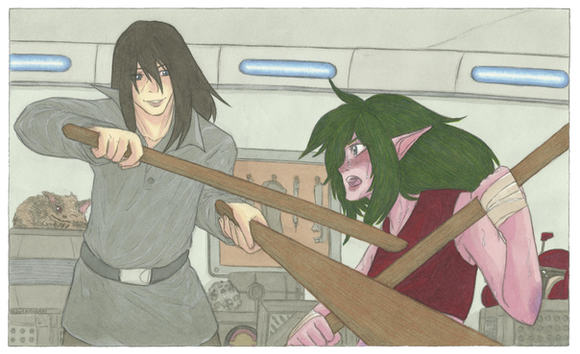 In the background Goldsaber regroups aboard the Liberty, settling into their temporary cabins and fixing up their battered ships, preparing for whatever may come in the uncertain future. In the hustle and bustle Jaeriel notices a distressed Orchid, who's worried about Quinn's depression following Hoth, Jaeriel herself also senses Quinn's sorrow, though neither she nor Orchid know exactly what happened to Quinn, and both are wary of asking her about the touchy subject... The horrific death of a friend right before her very eyes. In truth though, she probably really does want to talk about it, but is afraid of falling into deeper grief. ;_;