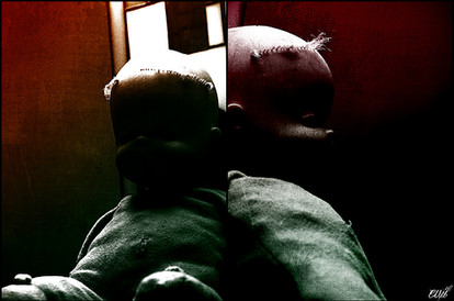 Nice comp...it's very effective in the creepiness factor. I like the harsh lighting too, it works well with the subject matter and all.