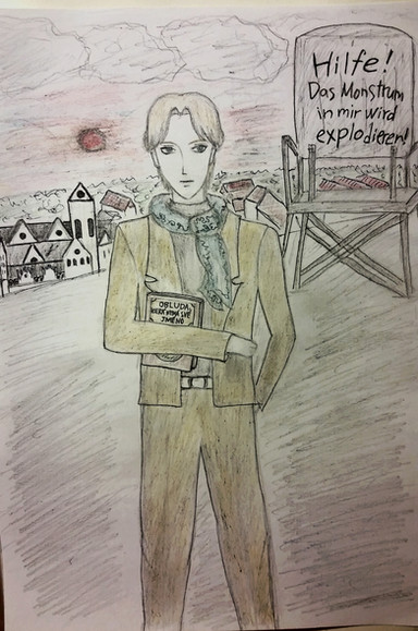 Just a little self portrait... if I were a homicidal maniac.Originally done for posters put up at a Haunted House where I played the 'chainsaw murderer.'
