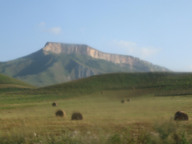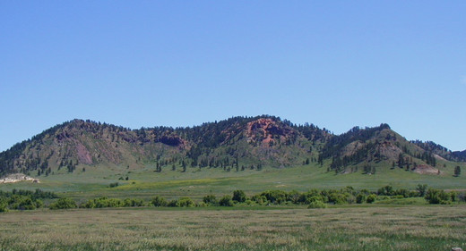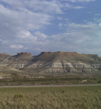 SW of Great Falls, this 'Square Butte' was named "Fort Mountain" by Lewis & Clark:This mountain has a singular appearance. it is situated in a level plain, it's sides stand nearly at right angles with each other and are each about a mile in extent. these are formed of a yellow clay only without the mixture of rock or stone of any size and rise perpendicularly to the height of 300 feet. the top appears to be a level plain and from the eminence on which I was yesterday I could see that it was covered with a similar coat of grass with the plain on which it stands. the surface appears also to possess a tolerable fertile mole [mold] of 2 feet thick, and is to all appearance inaccessible. from it's figure we gave it the name of fort mountain.