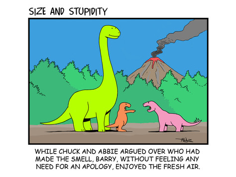 Hi everyone! I could not starve you of cartoons any longer. Here is one that will be in the 'Size and Stupidity' book, coming soon to Amazon. I hope you enjoy it.Related content