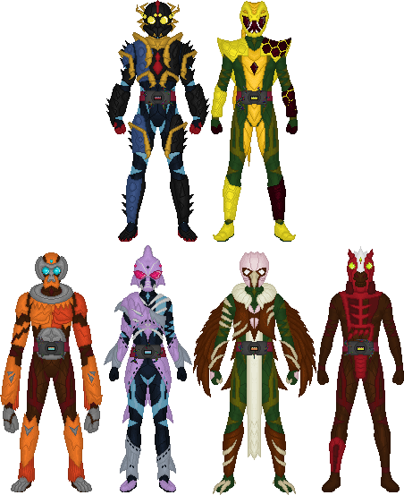 CRChat is a loving homage to the private Discord server where the Contract Riders game was played. Ruby and Python were created as a silly joke about Java both referring to coffee and a programming language; Python would've been yellow and blue like the Python logo, but that would've made him look pretty much exactly like Kamen Rider Jeanne. Midnight used to be on the "other Riders" entry , but was moved over here so I could add Contract Rider Coven to that page.