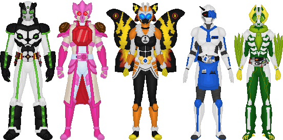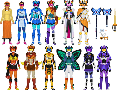 Ziggurat is based on the Great Ziggurat of Ur, while Inti is themed after Machu Picchu; the two have similar designs and belts, with the core of Ziggurat's belt based on Kamen Rider Stronger's while Inti's is based on Kamen Rider Amazon's belt. (As a plus, this ties into Inti's condor motif, inspired by the Temple of the Condor at Machu Picchu.)