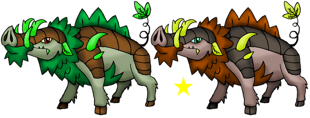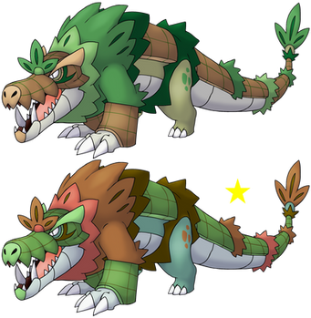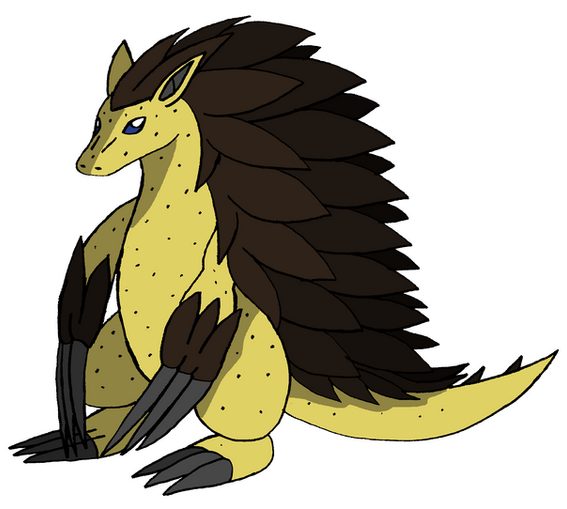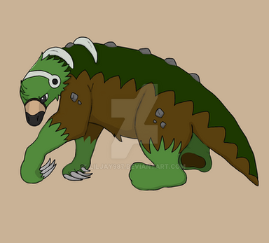 An entry for a fakemon contest on Discord, same as the previous two: Pliosaur Fossil & Copyu Rocker Pikaclone . People were grouped into teams of three and tasked with making a starter line; my team and I decided to go with Grass and giant ground sloths, and I volunteered to create the final stage. So here it is!Xilostruct, Grass/Ground. The Excavator Pokemon. Evolves from Plowvell
