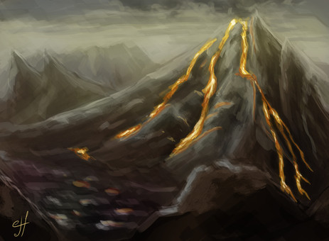 Just trying out some stuff. Mainly working with landscape forming, rock forming, architectural scribbling, dynamic composition, atmospheric unity, and the principles of light here. I feel like I'm improving.Time: something like 10 hours, I think