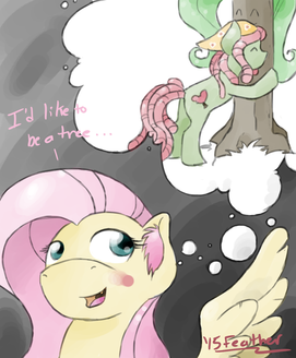 Another pic from my Doodle or Die account. For some reason I have more pony pics on that website than here.The original prompt was "Fluttershy would not like to be a tree."