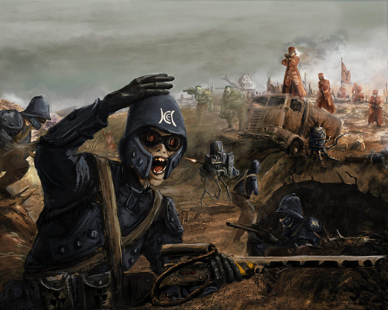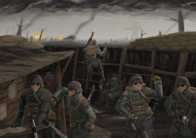 I love the uniforms and the crazy looking mounted weapons. It' almost eerie how the uniform kinda disguises the fact that those soldiers are people. love this, keep it up.