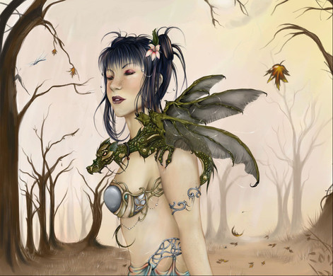 very beautifuls. i think the skin looks great. the phoenix too. yet i think when it gets near the bottom (from her waist down) i think it's kind of blurry. it might be my comp. yet i really like the colors and the girl and the phoenix. excellent job