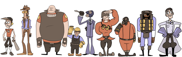 Stylized and simple mercs. Love how it turned out, especially Engineer and Pyro. One has no thoughts, head empty, the other knows your sins and stares into your very soul...Very cool!