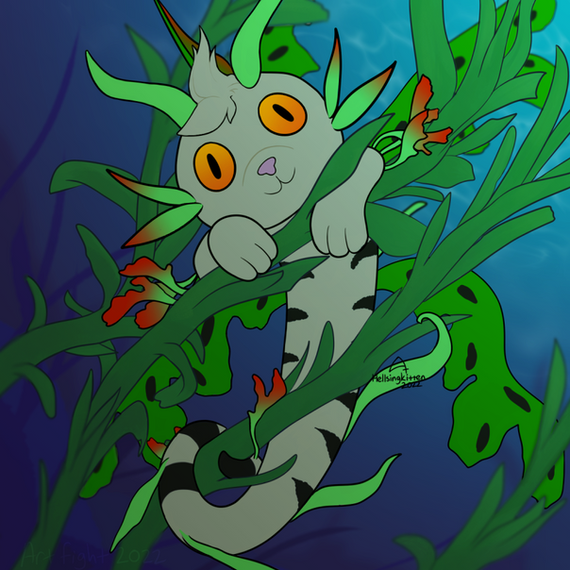 #cat #feline #aqua #bubbles #catfish #critter #cute #design #designing #fish #practice #rocks #seaweed #water