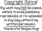 ♥ You may use this copyright banner on any site for your arts, I just ask to please still give me credit either by name or sharing a link back to this. Thank you! =}