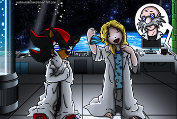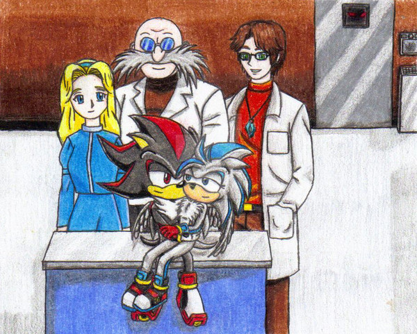 The first time I´ve ever drawn Shadow as a kid.This pic shows a scene right after Shadow´s creation. The Professor´s taking him to the lab, to test his abilities and his health. And on the way there Shadow and Maria meet for the first time....