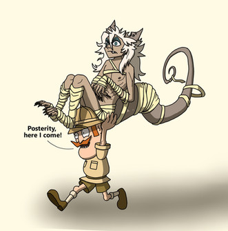 "The King doesn't want you to know this, but Princesses are free, I have 4 in my dungeon right now."Snek Knight catnaps an Egyptian princess. You never know how useful a good ball of string might be.