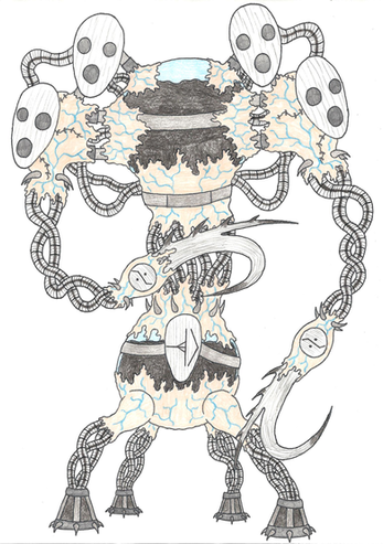 For such a powerful and fearsome virus, I felt it’d be fitting to draw the creature as a towering hideous amalgam of robotic parts consumed by a mass of pure viral chaos.