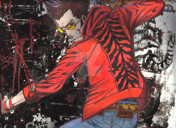 This picture rocks! I'm so glad I found you at Otakon, the picture is hanging in my room now XD This is probably the best Travis drawing I've seen yet