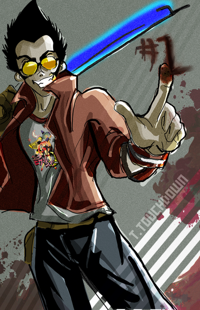 "Moe."Travis Touchdown - No More Heroes' perverted protagonist. I love this guy. As you can probably guess this one is to match my Holly Summer's print. I originally wanted to do all of the bosses in NMH. But I doubt it will ever happen. However, I do have a couple more to finish up and post. After that well we'll see if I ever get back around to it. I still kinda want to do one of Letz Shake, Jeane and Speedbuster XD Anyways enjoy!