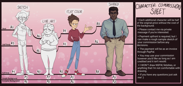 Hiya! I realized I don't advertise my commissions too much on dA and though I should share here!Have an oc that u would love to see come to life?