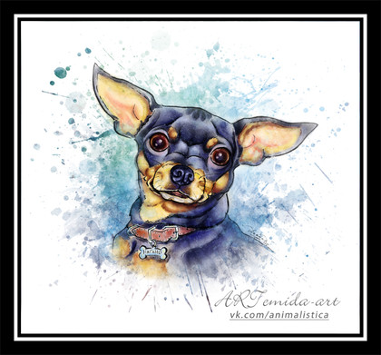 // Digital drawing of a pinscher dog, this time in a more graphic style than the previous one.I hope you like it!
