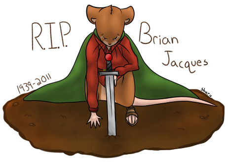 One of my favorite authors of all time, Brian Jacques, sadly passed away on Saturday February 5th, 2011. I only just got the news on Monday, while I was waiting for a class to start and was checking some news. I was devistated.Brian Jacques was an incredible author. He wrote Redwall series, 21 books. Each book was so packed with adventure you never wanted to put it down. The details were so rich you could see it. And the food he described sounded so delicious that reading it on an empty stomach could make the rumbles heard across the room. I loved how he incoporated dialecct into his characters species, from moles to hares to squirrels. His stories fascinated me and inspired me to draw and write my own stories and make my own characters.