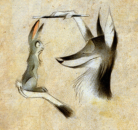 Awwww,a frowning scruffy fox and a cute bunny rabbit x"D x3