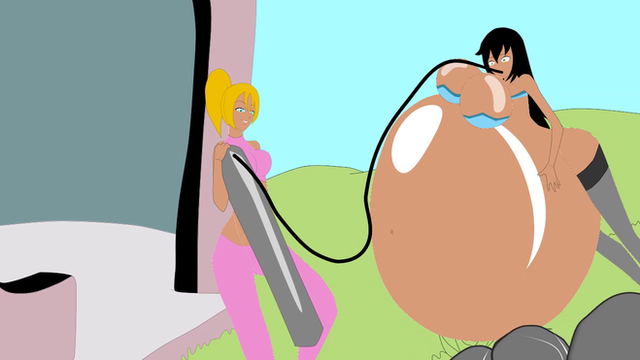 Aria'S Breast being filled with Air while Skie's Belly being pumped up with Water.