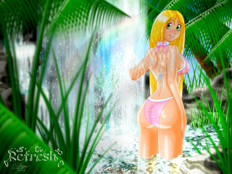 Commission for Loner2000 with his OC "Aria" and Skie in a tricky inflation situation in a zen-garden.Basicly the Idea was to form a Jin/Yang symbole with they Bodies. In the end it turned out to be hard to be noticed to be honest.
