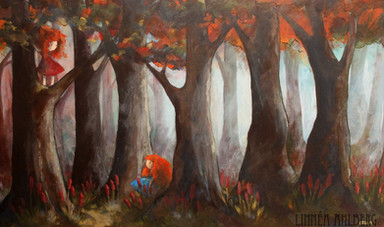 I love The Little Girl and The Wolf. You must have spent hours working on itΒ - itβs so beautifully detailed. I like her apprehensive posture while facing the wolf which by the way is also beautifully drawn β wish I could draw animals as good as you -Β and the way she is enclosed by those trees β just breath taking!