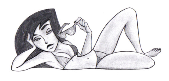 Based on a little figurine I bought on vacation in Disneyland of the Jessica Rabbit character from 'Who Framed Roger Rabbit'... I know this looks kind of off (I'M RUSTY, A'IGHT?), but it's supposed to be a mix of the Jessica and Shego styles.Well, I felt like I needed to stick up something KP! I gotta show some love to my Possible peeps every once in a while!