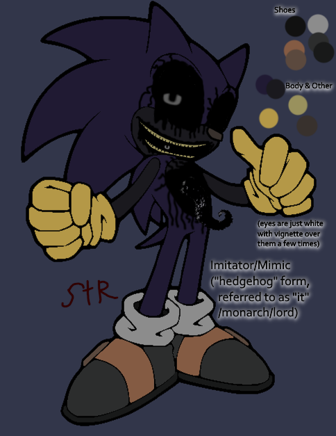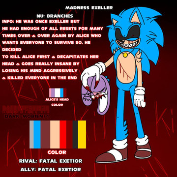 Exnic is a really fun, alternate take on Sonic.EXE, I would say. He’s a powerful individual to a fault, as most of his abilities are imperfect or “buggy,” and has flaws. Which definitely is a result of me writing him as a person, and that’s why he may seem tamer/chiller.Facts: