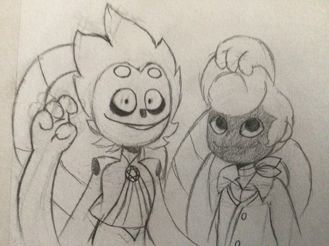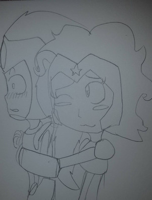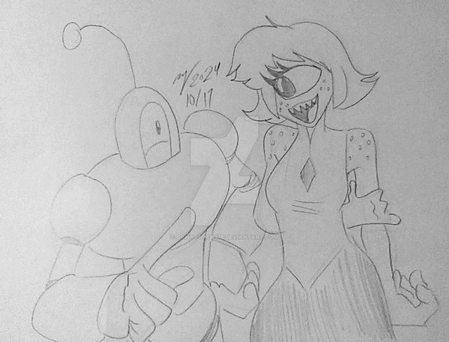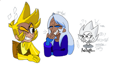 I made three random Gem characters because I'm working on a thing called Bubbled Spades, but here's two of the characters! A fricken Spinel and a Peridot, of whom I call Spade and Eyedot!Eyedot's studying Spade, I guess. I suppose she's never really had a Spinel to study before, so I mean.... like....