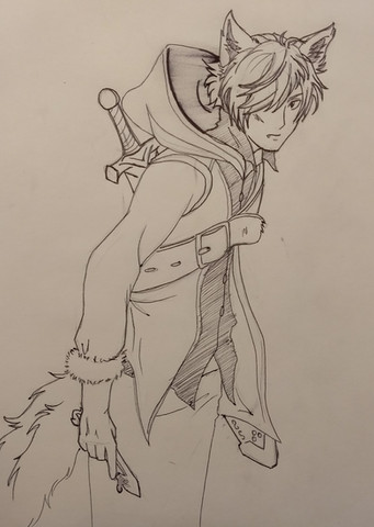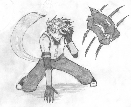 Just the design for this character of mine. His name is Christopher and is the youngest of 3 siblings. He is most like his mom and He's never been afraid to speak his mind, fearless, and he's blunt. He prefers action rather than thinking things through and has gotten in trouble plenty of times for his attitude and disobedience against his teachers or any authority figures. He's also been known to get into fights, usually defending Tom (his older brother) who gets bullied and doesn't stick up for himself. Chris loves being around other people rather than by himself and gets depressed because his siblings like to hide away leaving him alone most of the time. He loves the outside and animals and volunteers at the animal shelter on weekends. Animals also seem to love him and flock around him. 14 when the story starts. Fenrir is a magical titan who possess him giving him many abilities but also changing him as well as scarring him. That wolf is his wolf form which stands as high as 25 feet when he releases all of his power.Related content