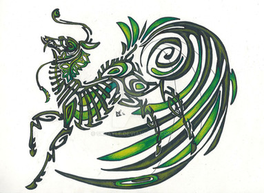 I give this a 10. The water was done perfectly and the green to me represents the grass growing up the lightness of the sun on the head of the horse. Great job!