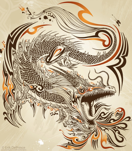 #design #dragon #fantasy #mythological #skeletal #skeleton #tat #tattoo #tribal #fire #tribaltattoo