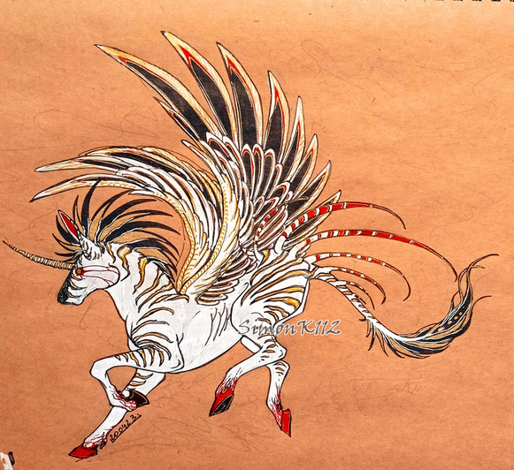 Thanks! I'm always so nervous trying to do lineless with colored pencils, but I think this one turned out fine. Haha! I guess I imagined something like the creature from my "Death is a Vivid Spirit". That one is part Chinese Water Deer and part random land creatures. I thought I might try something more water-based for this one, ironically, so I took the idea of the Chinese Water Deer skull and added on aquatic-like fins. The rest of it is just made-up skeletal bits. So I guess you're not too far off at all! c:
