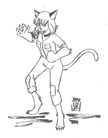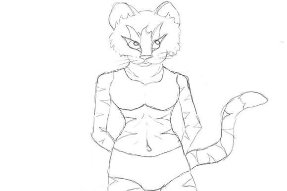 There's an episode of *Teen Titans* that's a fan favorite for weird reasons. It's the episode where the titans are transformed into animals by an insane magician named mumbo (or something similar). Thus creating the Titanimals. I took a serious interest in Starfire's tiger form, and it probably led to some of my degenerate interests I have today.Enjoy this sketch.