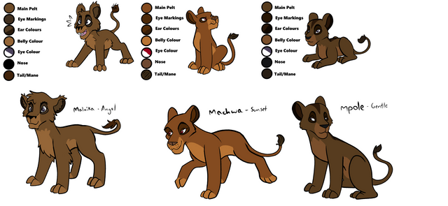 This was an art trade with my sister on DA, !! I love her so much, I would not be the artist I am today without her support over the years. She did a reference sheet of my fursona, Lee, as a gift, so I asked to do a trade for one of Majira! Sorry for how my reference sheet designs have been changing.. but I think I'm sticking with this style now!Also, ignore the drawings of Kiara and Kovu. SERIOUS. don't look at them. they will make your eyes sink into your skull and rip out of your brain. Okay...maybe they won't do that. But I was a 7th grader! don't make fun of my old art ;-; I haven't drawn any of Kiara and Kovu since, haha. At least... not digitally.