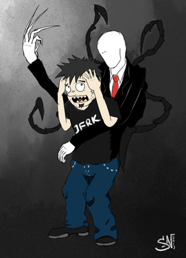 There was a shadow on my ceiling that looked freakish-ly like a man and this idea popped inot my head, Like C'mon Slendy i can't sleep with you lingering on mah roof.Slenderman is a myth and doesn't belong to anyone :\